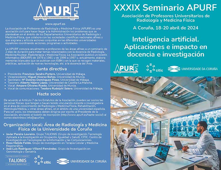 - 12:15-14:30h. Ponencias libres (Aportaciones de experiencias de investigación y docencia del área de Radiología y Medicina Física).